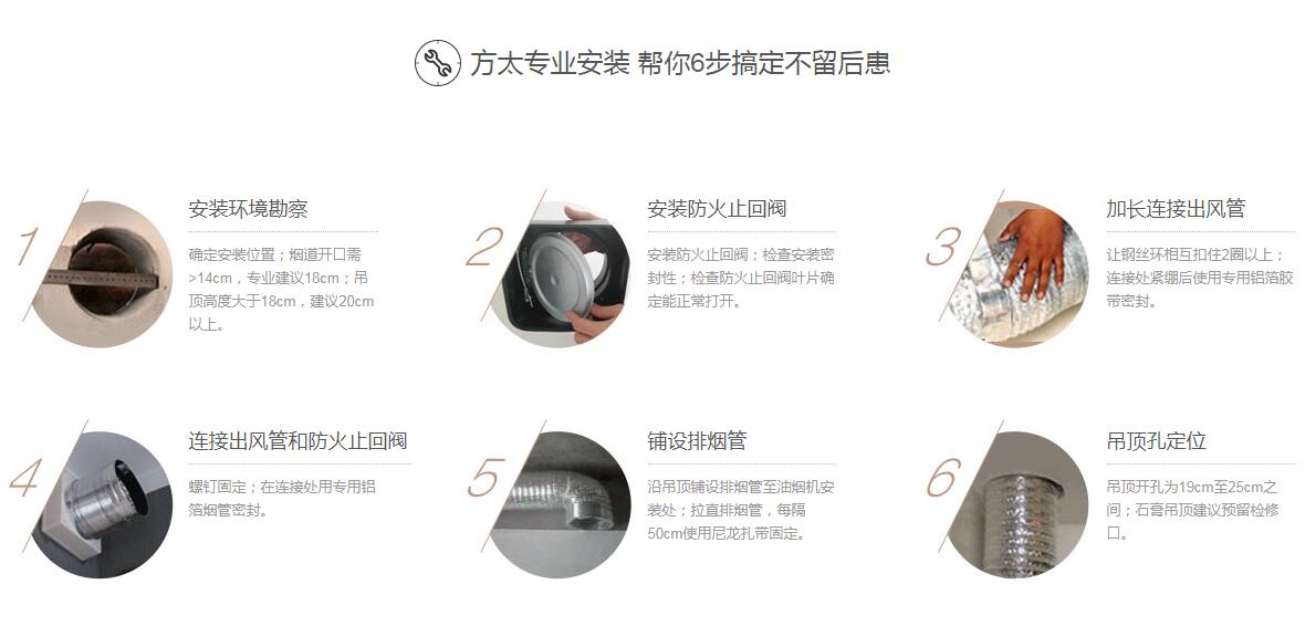 装修小知识 1:为什么安装方太止回阀? 答:(1)方太的止回阀是不锈钢材质,有防火功能。 (2)防止发生倒烟、串味现象 2:为什么在吊顶前预埋止回阀? 答:安装止回阀关系到烟道孔尺寸是否合适,需要重新扩口,提前把烟管放好,预埋完止回阀再吊顶,避免吊顶在拆卸过程中变形!